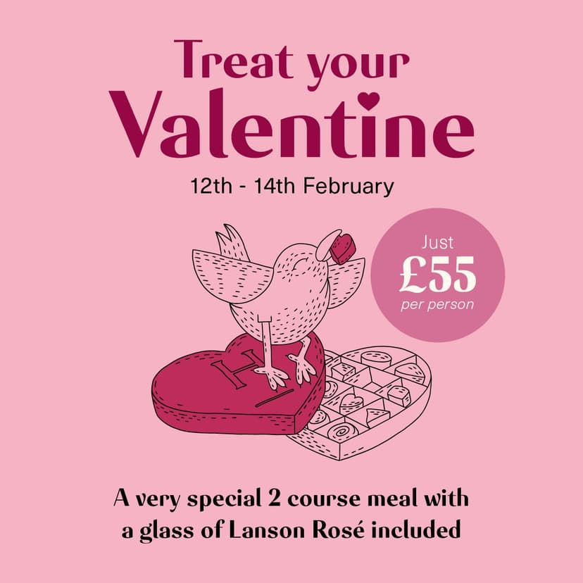 Celebrate Valentine’s at The Cricketers with our indulgent 2 course set menu, featuring beautifully crafted dishes and a glass of Lanson Rosé for just £55 per person.